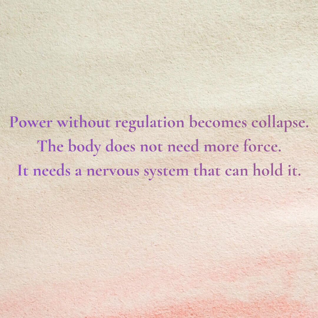 Energy moves without coherence, and we may feel tired, constantly tense, or reactive. We rush, collapse, or disconnect — mistaking urgency for productivity, and shutdown for rest.A regulated nervous system is calm but alert. It allows movement without dissociation, action without losing ourselves in doing, and stillness — real rest — without guilt.